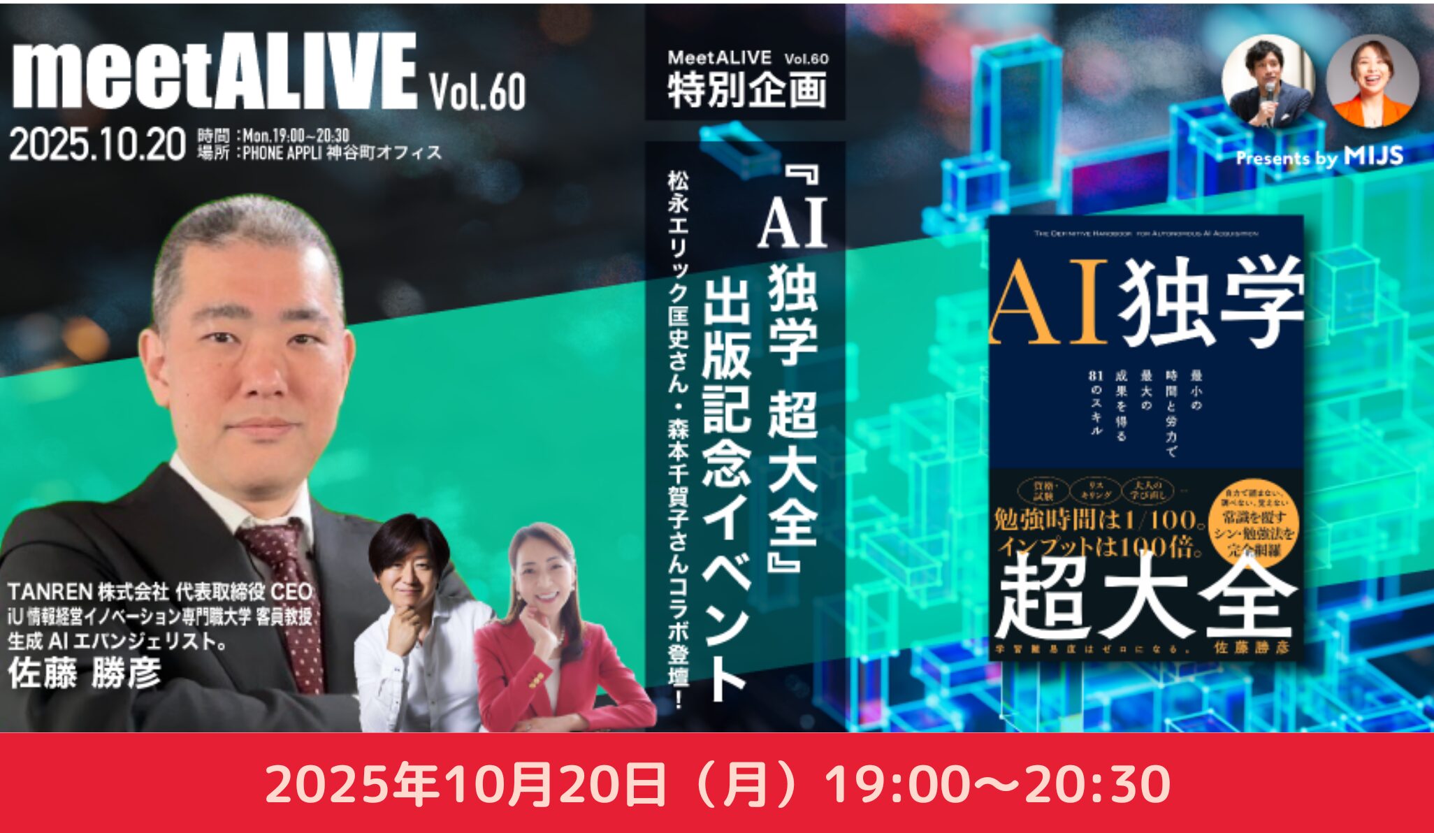 meetALIVE! Vol.60 特別企画、TANREN株式会社 代表 佐藤 勝彦さん著書『AI独学 超大全』出版記念イベントにて、