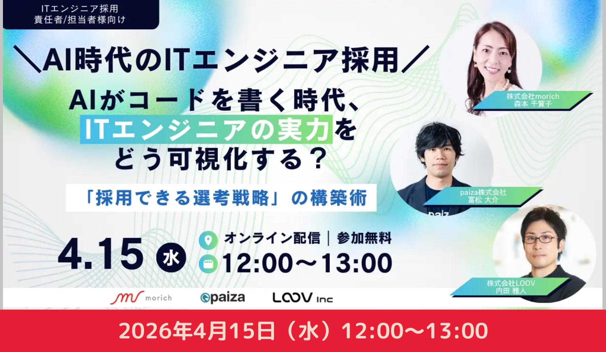 ITエンジニア採用に関わる人事・採用担当、開発責任者の皆さま、ぜひご参加ください。